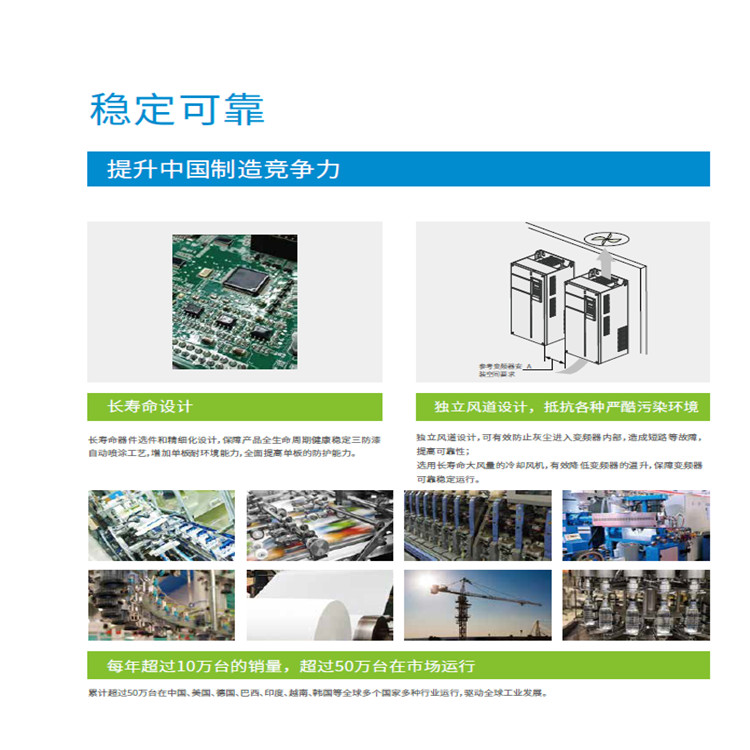 精細化設計,體積減少 30%;完善的直流制動回路方案和長壽命設計;獨立風道設計,可抵抗嚴酷污染環境